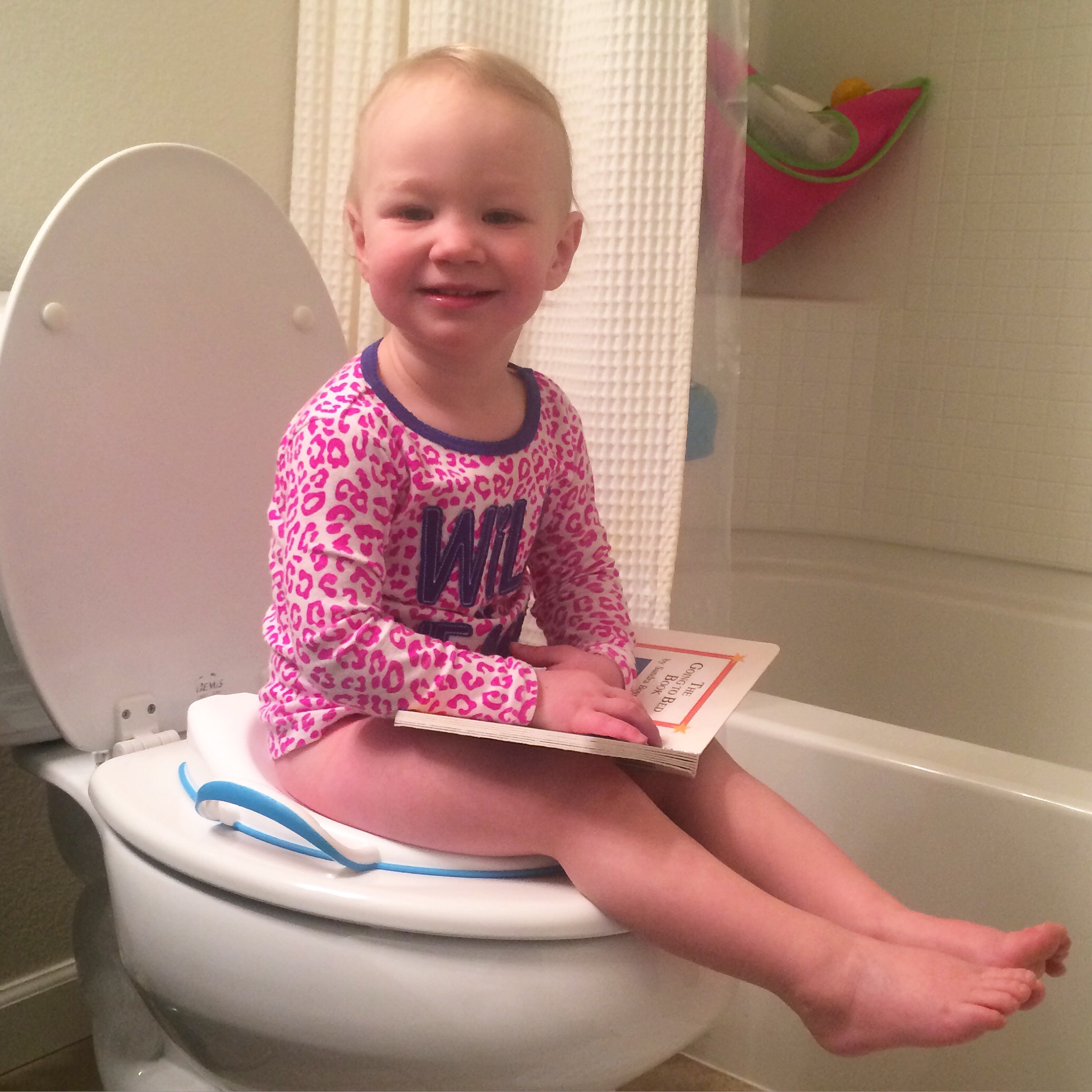 Cody’s major accomplishment this month was a successful pee in the big girl potty. We purchased a potty seat at the start of this month with the notion that we’d allow her to sit on it once or twice a day, just to get used to it. I was shocked when I heard a little trickle a few nights ago. She was so proud of herself and of course I was over the moon with excitement. I have no intention of fully “potty training” her until she seems more ready but it’s definitely a fun development.
