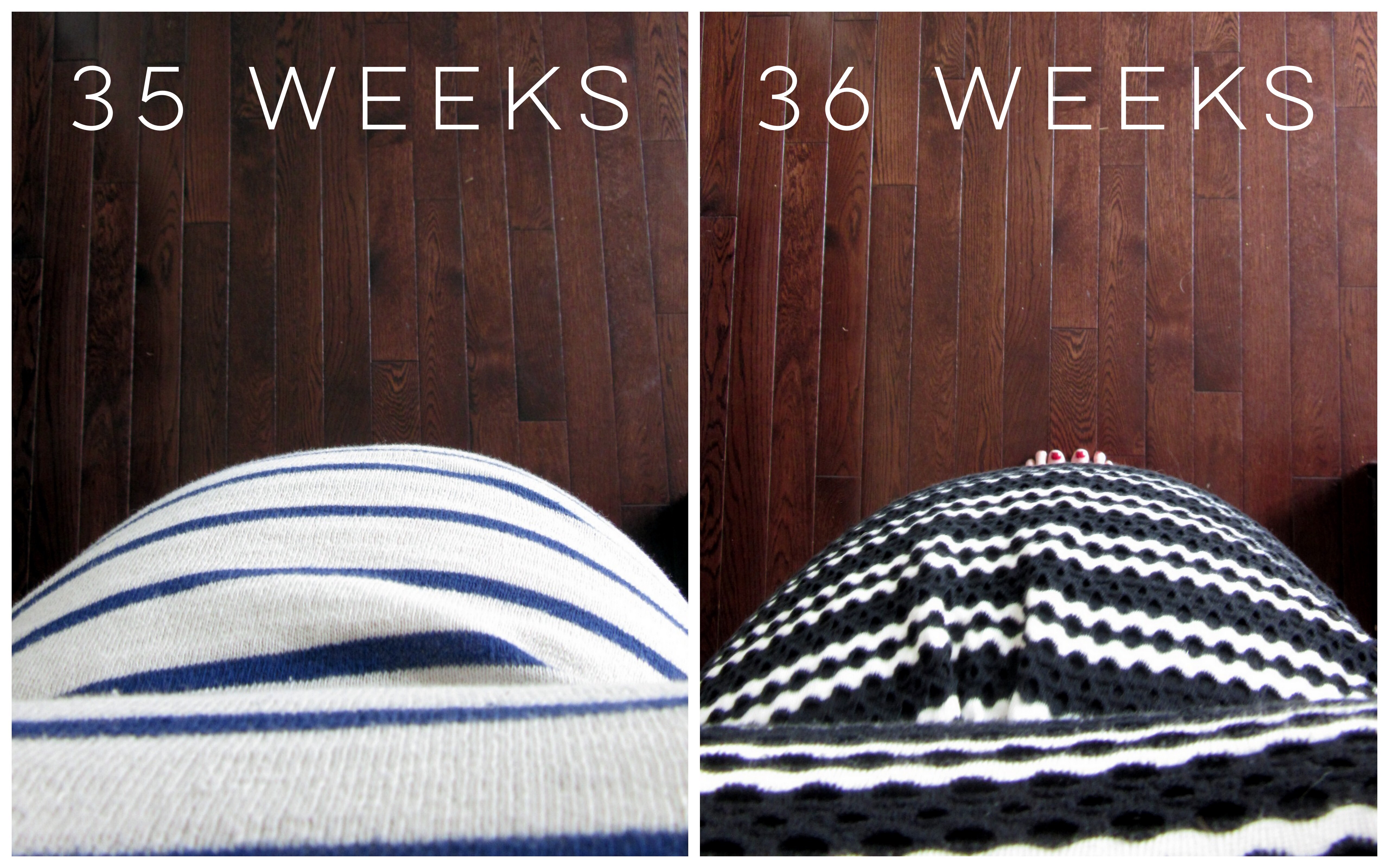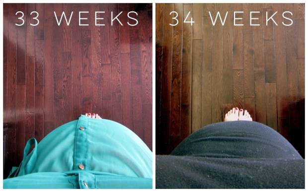 Baby’s Movement: I’m to the point where this kid is kicking less and leaning a lot more. I’ll get a knee or an elbow poking and sliding around my belly with a good amount of regularity. The nice thing is, at this point he’s big enough and poking out enough so that if he gets into a position that I don’t like, I can push my belly to adjust his positioning a bit. He’s been head down for at least the last two appointments and it seems his little toosh has found a good home just below my rib cage.
