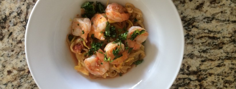 Whole30 Dinner: Tomato Basil Shrimp with Summer Squash Noodles